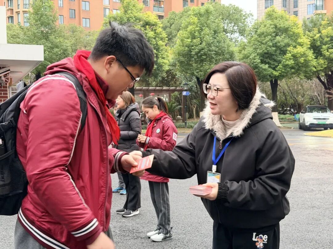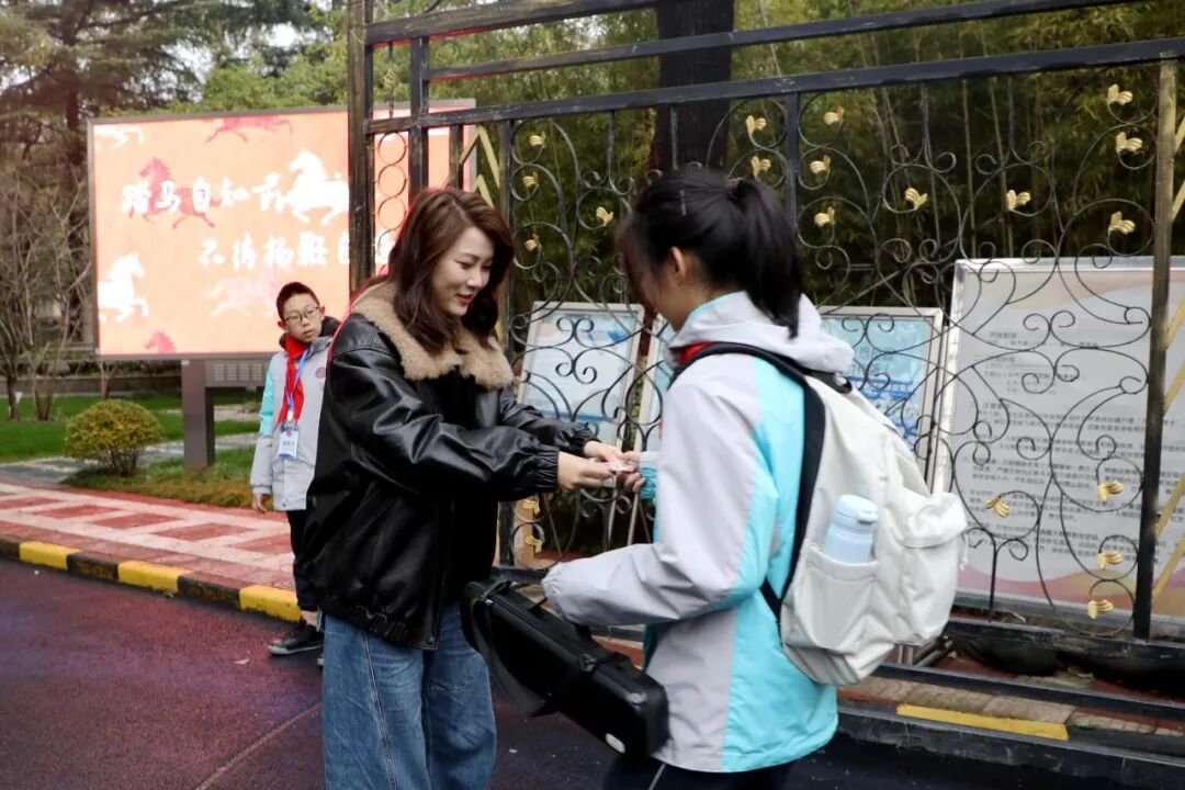 同一时间,娄山中学的老师们也早早守候在校门口,为每一位进校的学生递上一份精致小巧的礼物——一枚寓意“一马当先”的小马铃铛挂件。“新年好!新学期加油!”铃铛在晨风中轻轻摇曳,发出清脆悦耳的声响,与老师们的祝福一起,为学子们的新征程加油打气。