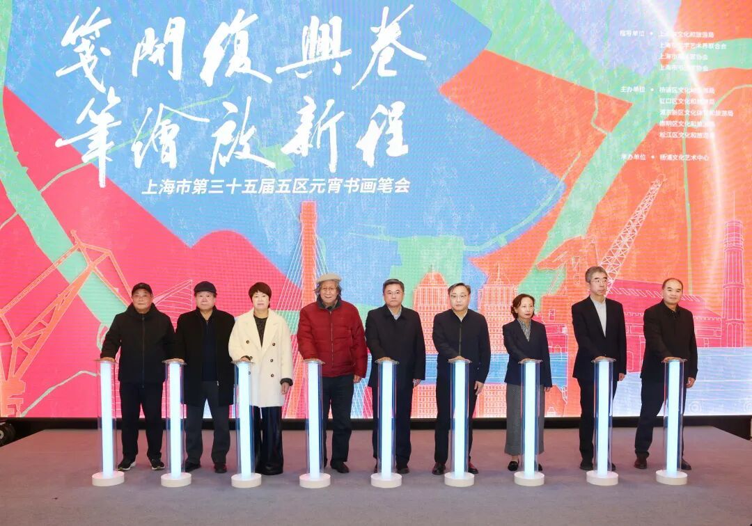 现场,与会领导以及艺术家代表共同启动上海市第三十五届五区元宵书画笔会。