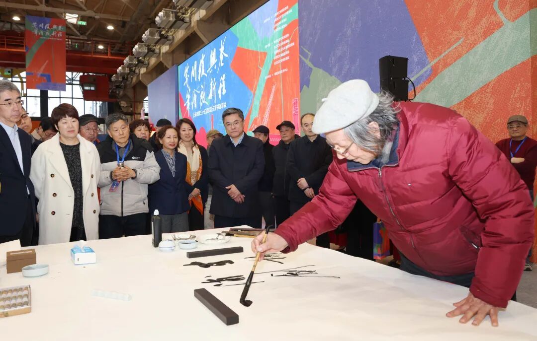 元宵灯火映照城市文脉,复兴岛畔墨香氤氲。今天(3月2日)下午,以“笺开复兴卷·笔绘启新程”为主题的上海市第三十五届五区元宵书画笔会在复兴岛船台PARK复兴云厅启幕。杨浦区委书记薛侃,上海市文学艺术界联合会专职副主席方坤,杨浦区委常委、宣传部部长施方,虹口区副区长陈筱洁,杨浦区副区长王浩、苟如虎,与来自市文旅局、市文联和杨浦、虹口、浦东、崇明、松江五区文旅局的代表与书画家们齐聚一堂,以笔会友、以艺传情,共续三十五载丹青之约。