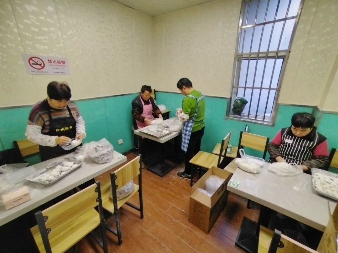 绕过大堂往里走,另有五六位工作人员正埋头赶制其他口味的汤圆:有人专门制作芝麻馅,有人专注打理枣泥馅,大家分工明确、手脚麻利,平均每10秒钟左右就能做出一只圆润饱满的汤圆。“这些不同口味的汤圆如何分辨?”面对记者的提问,工作人员杨阿姨介绍,她们主要通过形状来区分,芝麻馅的汤圆是尖尖的,枣泥馅的呈两头椭圆形,目前店里的鲜肉、菜肉、枣泥、芝麻和豆沙五种口味,只要一看形状,就能快速分辨,既方便制作,也能让食客一目了然。