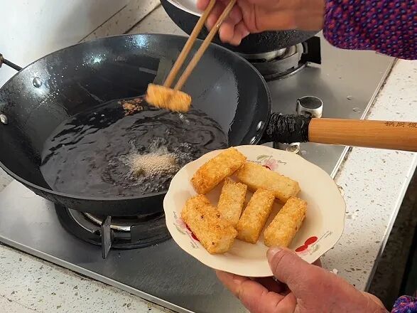 在漫长的岁月里,粢饭糕还沉淀了深厚的民俗意义。逢年过节或婚嫁喜事,家家户户都会制作粢饭糕。春节时,炸好的粢饭糕寓意“步步高升”;孩子满月时,长辈会将粢饭糕分给邻里,传递添丁之喜。这些民俗习惯,让粢饭糕超越了食物本身,成为承载情感、连接亲情的文化符号。