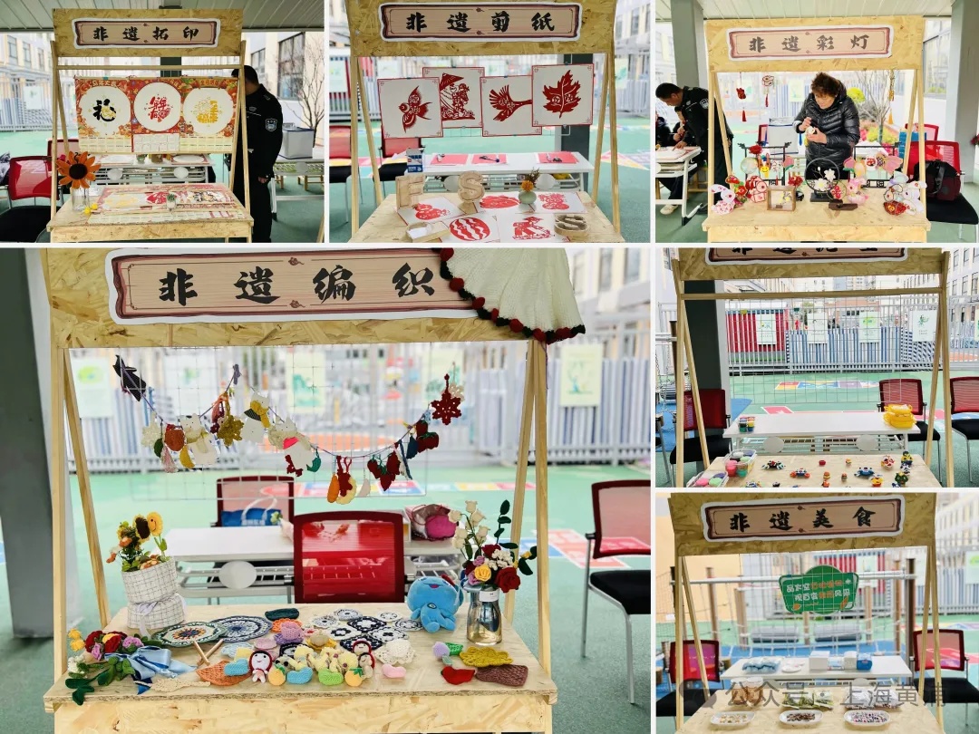 非遗体验区是这一天最热闹的地方。传统游艺区可以套圈、踢毽子、投壶;老字号美食区有梨膏糖、大白兔奶糖;手作区里,拓印、剪纸、泥塑、编织四个社团轮流展示,孩子们能动手体验,DIY的成品可以直接带走。