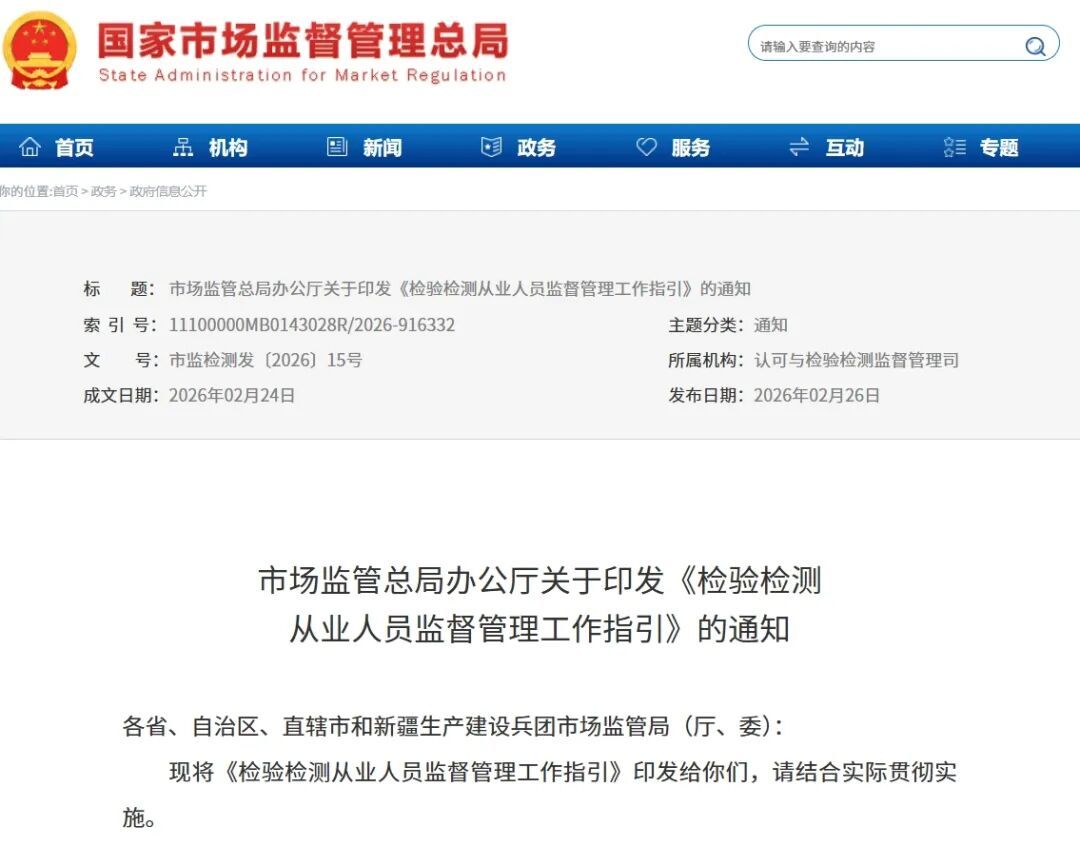 该指引明确了从业人员主体责任,要求从业者严格遵循客观独立、公平公正原则,对出具的检验检测报告依法承担相应法律责任,不得同时在两家及以上机构从业。