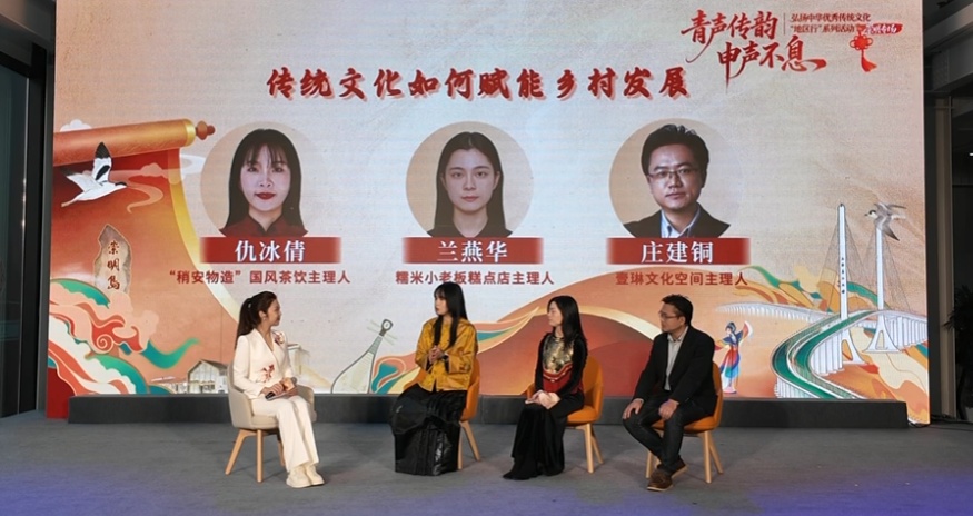 活动在青年主理人主题分享中拉开序幕。扎根崇明创业发展的仇冰倩、兰燕华、庄建铜三位青年依次登台,他们结合自身创业实践,围绕如何用创新形式激活乡村文化资源、焕新乡村文旅业态、培育乡村消费新场景等话题展开深度对话。这些接地气、有温度、富创意的奋斗故事,生动诠释了中华优秀传统文化在乡村振兴进程中的强劲活力。