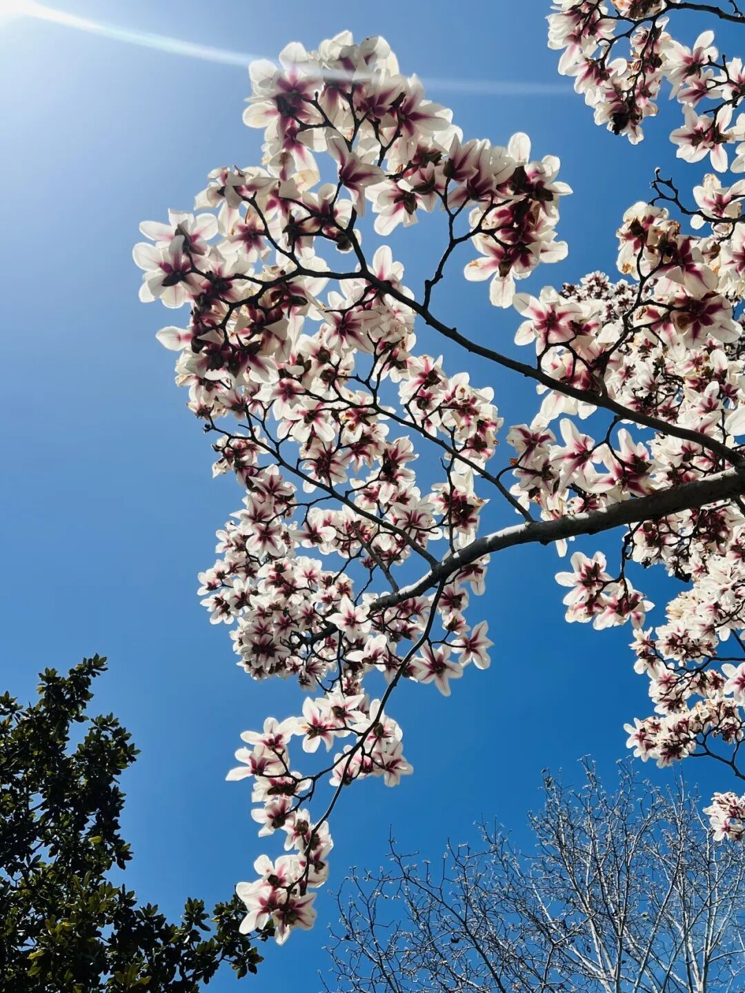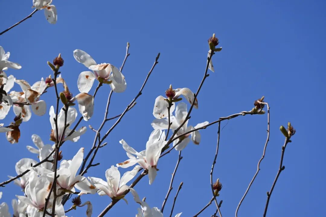 枝头的玉兰花迎着暖阳肆意绽放
