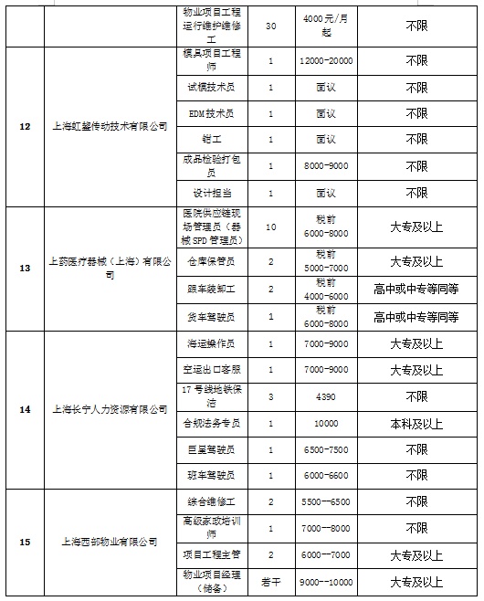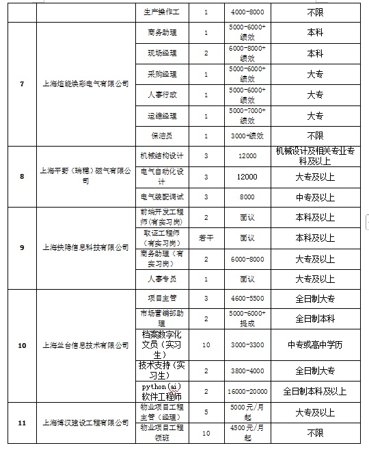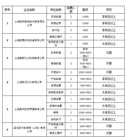 部分参会企业及岗位信息