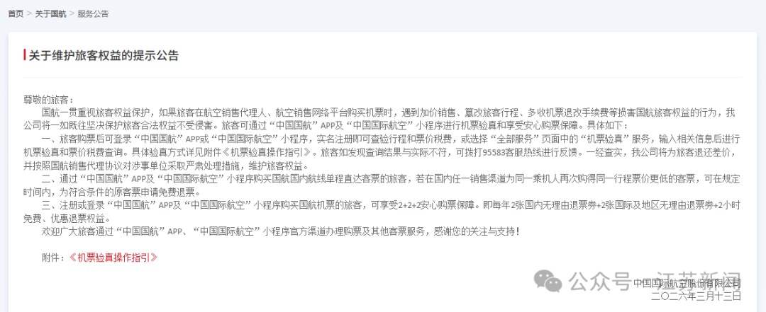发布维护旅客权益公告