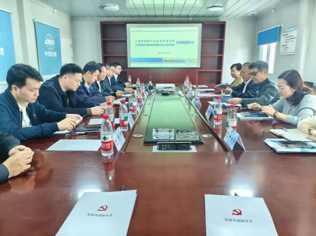 4月10日,市房协党支部与中铁建华东公司上海党支部共同举办党建联建活动。双方围绕深化政企协同、凝聚党建合力,推动党建与业务深度融合、双向赋能等议题展开深入交流。市房协党支部书记任杰、秘书长蒋慰如、副秘书长王春音;中铁建华东公司上海党支部书记、市房协会长黄文欣,上海党支部支委、项目负责人,以及双方党员代表参加活动。