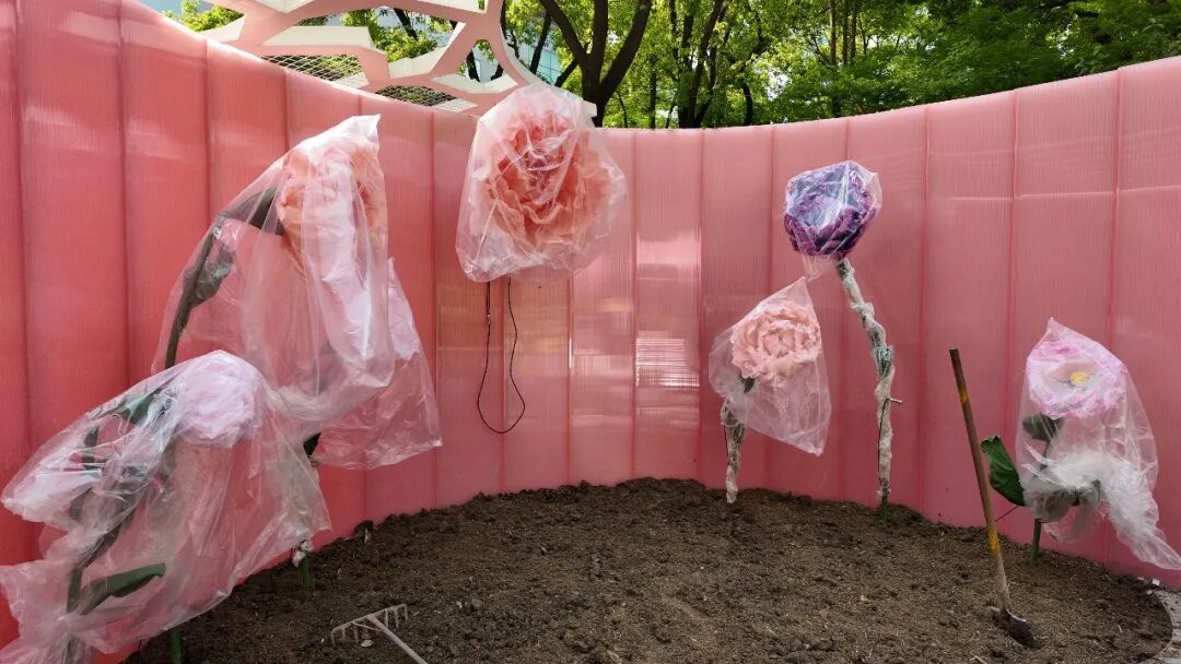 “绽放”—— 被守护的肆意生长:巨型开合花艺术装置是花园核心亮点,开合之间诠释生命从孕育到舒展的全过程,诉说着生育从不是孤独冒险,红房子百年专业守护,便是生命绽放的底气。