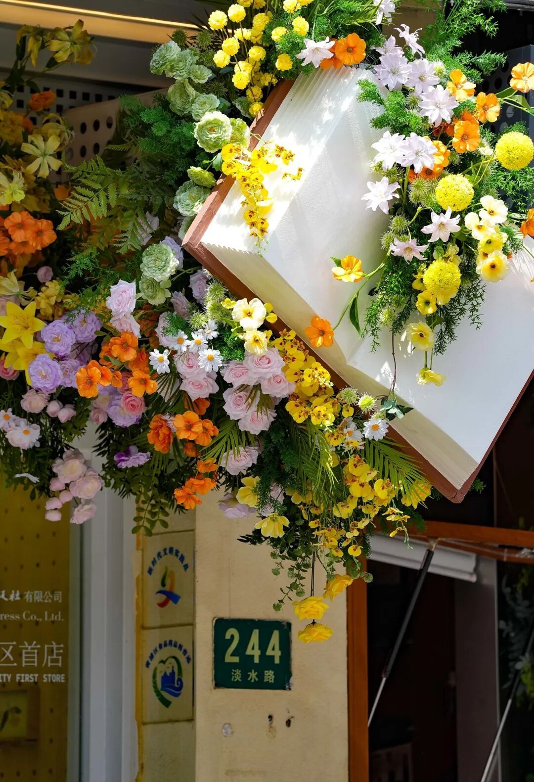 淡水路毗邻新天地主会场,被精心打造为“花街”。沿街10余家商户的橱窗、门头、窗前,每一处花艺装置都由专业设计师结合店铺风格定制。