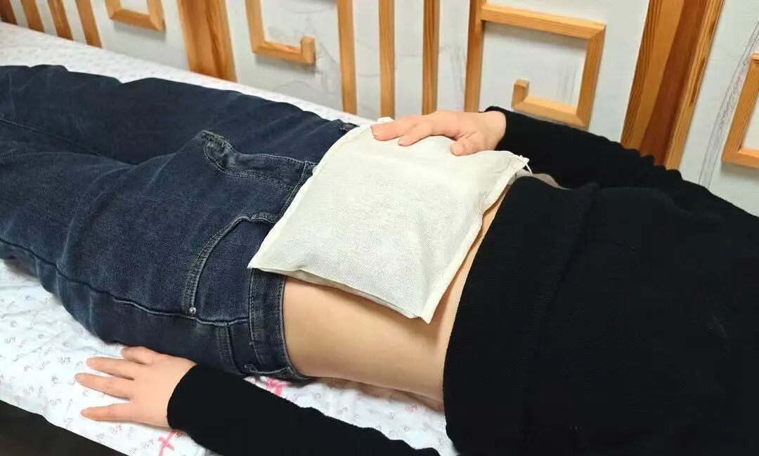 吴茱萸、紫苏子、香附、桂枝、高良姜、海盐等装入无纺布袋中,加热至65℃,于胃脘部外敷20分钟,糖尿病患者或有皮肤破损的患者禁用。
