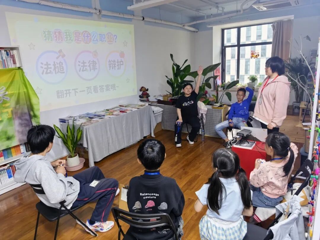 活动气氛在“我来比划你来猜”环节中被推向高潮。孩子们用肢体语言模仿医生、教师、消防员、外卖员等职业的典型动作,伙伴们则争相竞猜。
