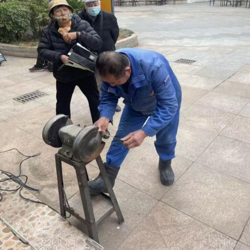 便民服务直击生活痛点,活动现场,磨刀、修伞、衣物缝补等服务摊位前人气满满,物业工作人员耐心细致服务,一件件旧物重焕生机,切实解决居民日常小难题。同时,健康义诊、便民理发等暖心服务同步开展,关怀覆盖老年群体与全年龄段居民。