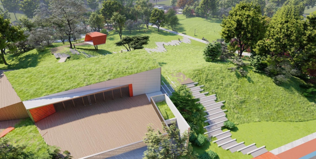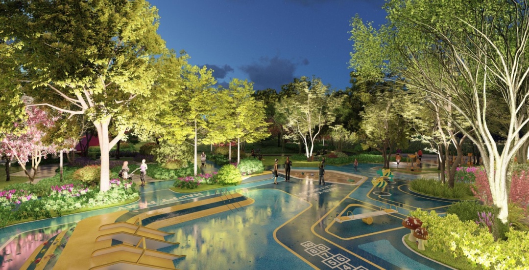 作为全园的“绿色核心”,开阔草坪为居民提供弹性使用的户外空间,可举办市集、演出、露营、健身等活动。四周错落布置乔木与花境,形成四季有景、疏密有致的自然氛围。