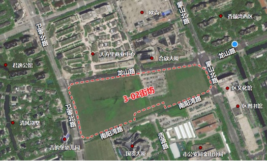 低密之外,这宗地块的地段同样硬核。地块被蒙山北路、南阳湾路、卫零北路、龙山路围合,正处金山城市发展核心主轴、区府圈核心。周边约1.5公里范围内,金山万达广场、百联金山购物中心两大商圈步行可达;华二金山实验学校、复旦大学附属金山医院、区图书馆、区博物馆等公建设施全在周边。没有规划短板,没有等待期——这是金山新城核心区难得一见的成熟地块。