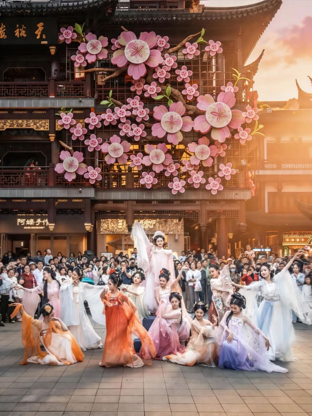 穿过复兴中路,福佑路的“花路”将人引入大豫园的古典梦境。豫园商城化身“古典花神的梦境花园”,十二花神身着华服穿行于明清建筑群,凝晖路的飞檐被各色花卉缠绕,九曲桥湖面的荷花花艺装置在光影中摇曳。跑过方浜中路,阿杰在人群中偶遇了花卉节专属IP“花宝宝Wendy”,憨态可掬的形象引得路人纷纷合影,“没想到跑步还能‘抓’到花宝宝,这波打卡值了!”