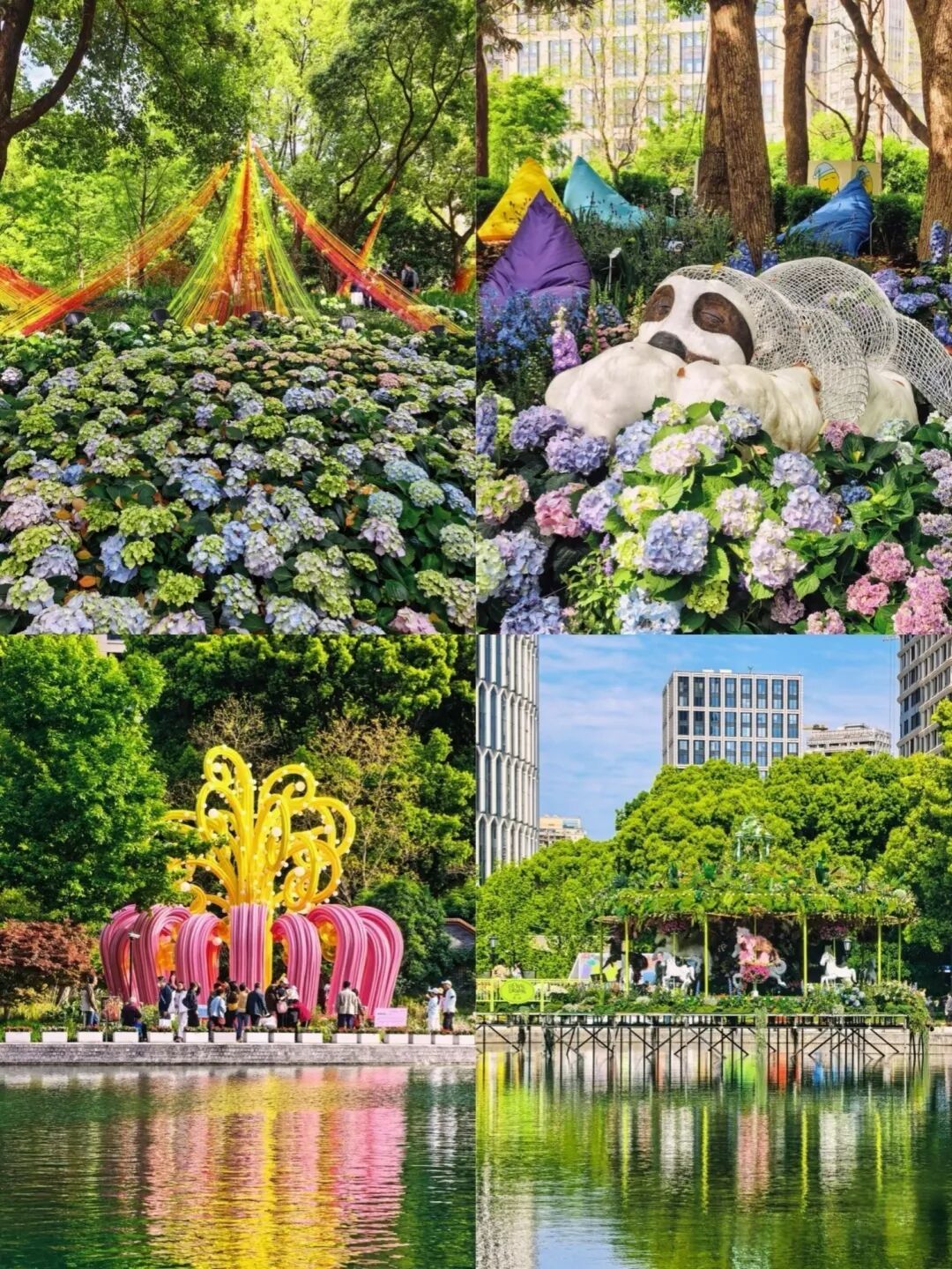从新天地湖滨路出发,太平湖畔的花海率先映入眼帘。作为本次花卉节黄浦主会场的核心区域,太平湖公园已变身一座“情绪花园”,热烈奔放的红色月季环绕着“愤怒”主题标牌,天蓝色的无尽夏绣球晕染出宁静氛围,还有橙色长寿花、紫色大花飞燕草等十余种花卉,以色彩为情绪注解,搭配微缩气味景观,让每一步都踩在“被看见的情绪”里。