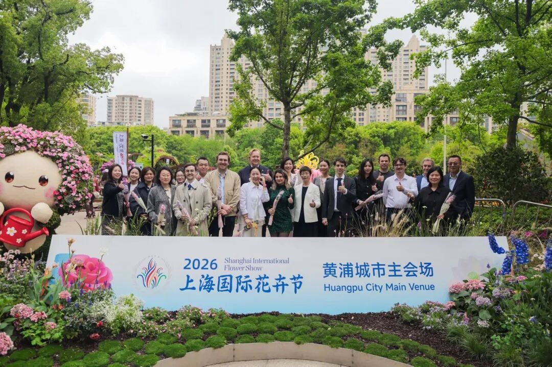 4月20日,2026上海国际花卉节黄浦主会场内,一众艺术花园繁花竞放、景致宜人。淮海中路街道特别邀约巴西、阿根廷、欧盟、荷比卢、新西兰等多国商会代表、组织代表以及长期在辖区工作、生活的外籍企业高管齐聚新天地,沉浸式领略黄浦区的春日风光、人文底蕴与发展活力。