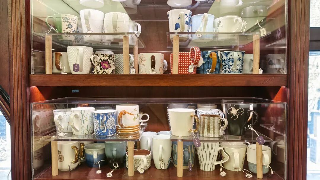 而这里最具文学气息的,莫过于咖啡台旁的惊喜——一面陈列着各种各样杯子的展示区,每只杯子上还吊有一片作家签名的小标签。店员解释道:“这些杯子是作家到访时使用的,每个作家都有属于自己的专属杯子。”