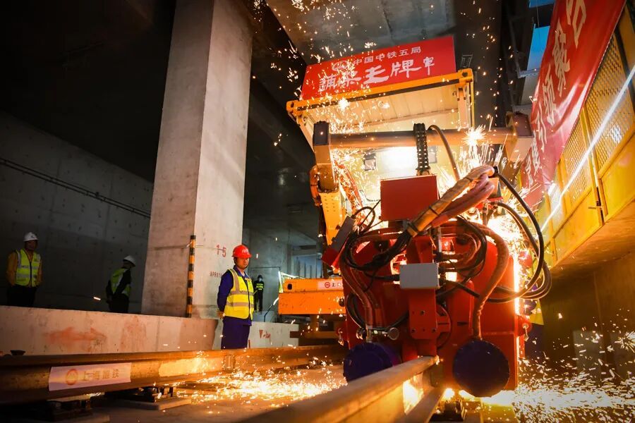 4月21日上午,随着中铁五局作业人员在崇明岛陈家镇车站内完成最后一对钢轨接头焊接,上海首条穿越长江的轨道交通工程——上海轨道交通22号线(崇明线)正式实现全线轨道贯通,为后续机电设备安装、系统联调联试及电客车上线调试奠定基础。