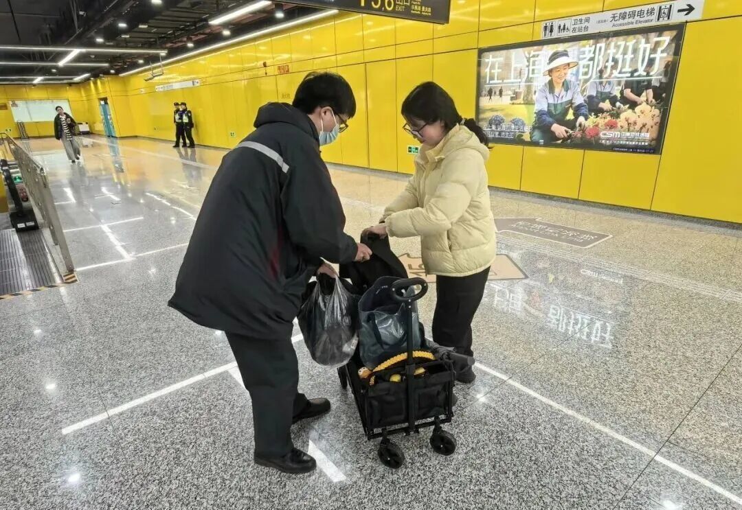 日前,上海轨道交通15号线景洪路站推出“领航随行”便民服务,旨在解决乘客长距离换乘、重物搬运的出行难题,用暖心举措为乘客出行“减负”。 爱心接力显担当 无缝护航暖归途 此次服务的推出,源于一次爱心接力。当天,多职能队员(列控)王欣泳通过监控发现一位携带大件行李的乘客行动不便,第一时间联系车站请求协助。多职能队员(站控)王宙超接报后,立即汇报多职能队长(车站)刘贤青,队长迅速响应,安排“领航员”团队成员推着推车在站台指定位置等候。在了解到乘客需要换乘市域机场线后,便一路推车护送,全程陪同乘客完成换乘,直至将其安全送达市域机场线站台。各岗位高效配合、无缝衔接,用专业与耐心赢得乘客连连点赞。 便民服务零距离 领航随行解民忧 以此为契机,“领航员”团队深入分析乘客出行痛点,围绕长距离换乘中行李搬运难的实际需求开展研讨。为了将这次暖心帮扶变成固定服务,让暖心的事不只是“做一次”,而是“一直做”,车站特地配备了专用露营车,并正式推出“领航随行”便民服务。 现在,车站发现行李较多、较重的乘客,车站各岗位将相互联动,并由车站“领航员”全程协助,使用露营车将行李运送至市域机场线换乘站台。景洪路站换乘通道长约400米,该服务让携重乘客换乘更加轻松无忧,真正实现便民服务“零距离”。