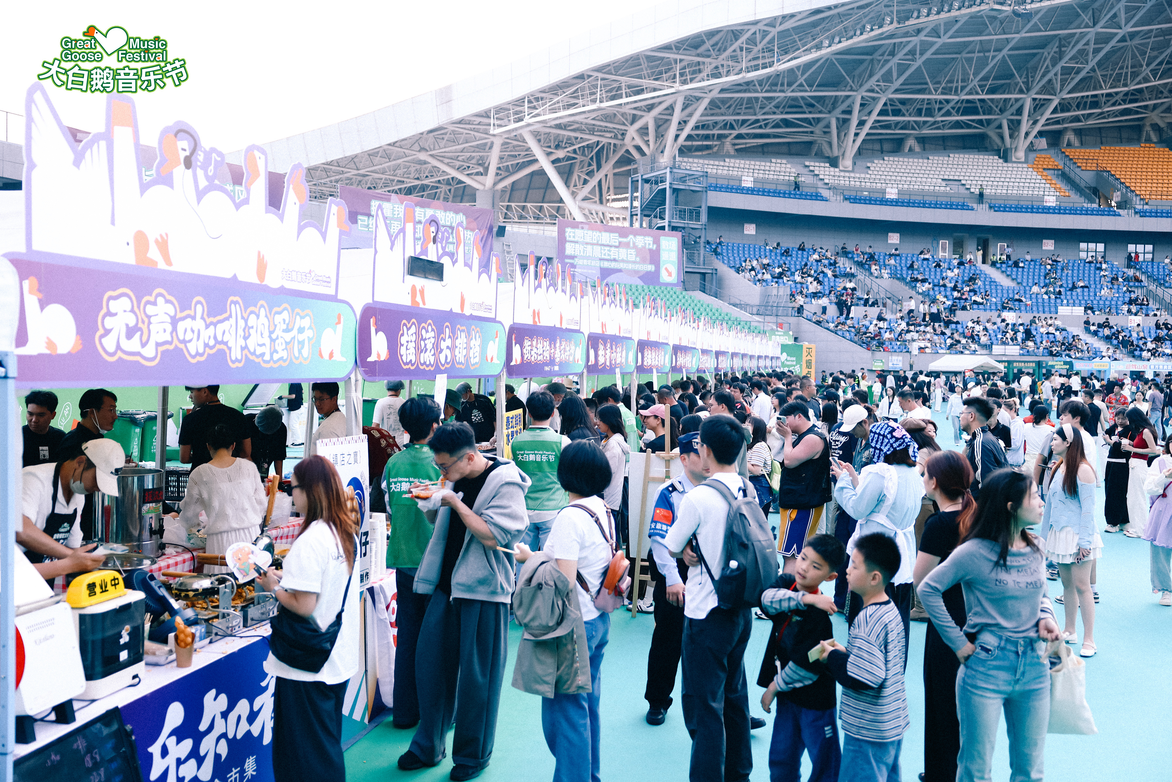 六安素有“白鹅之乡”美誉,是全国最大的鹅肥肝生产基地之一。此次音乐节以“大白鹅”为名,将产业IP转化为文化IP。从“鹅言鹅语”创意海报到现场随处可见的大白鹅LOGO,从鹅文创产品到市集展陈,IP元素贯穿始终。“大白鹅”不再只是羽绒和肥肝的标签,现在已成为六安城市形象的新符号。一位来自合肥的乐迷说:“以前只知道六安有鹅肝,没想到还有这么潮的音乐节,大白鹅的形象一下子亲切了。”