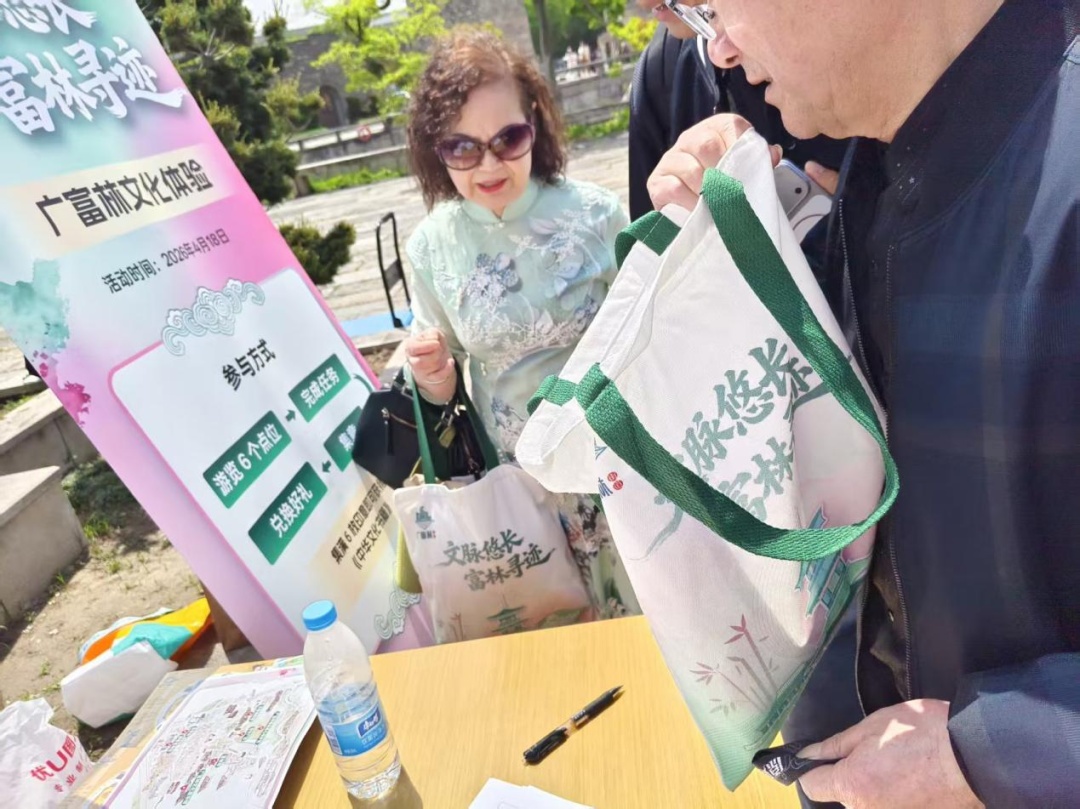 活动当天,任务卡供不应求,最终数百位挑战者成功集齐印章。一位带着女儿从市区赶来的家长表示,活动形式新颖有趣,孩子在富林塔前学会了松江话“阿奴是松江人”,留下了印象深刻。