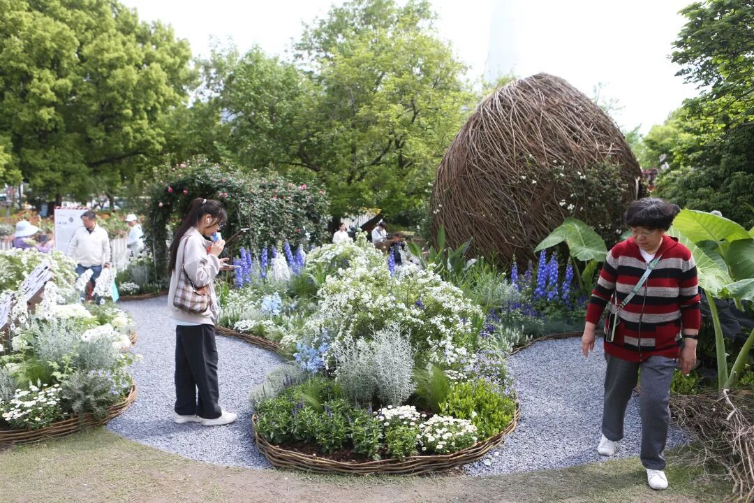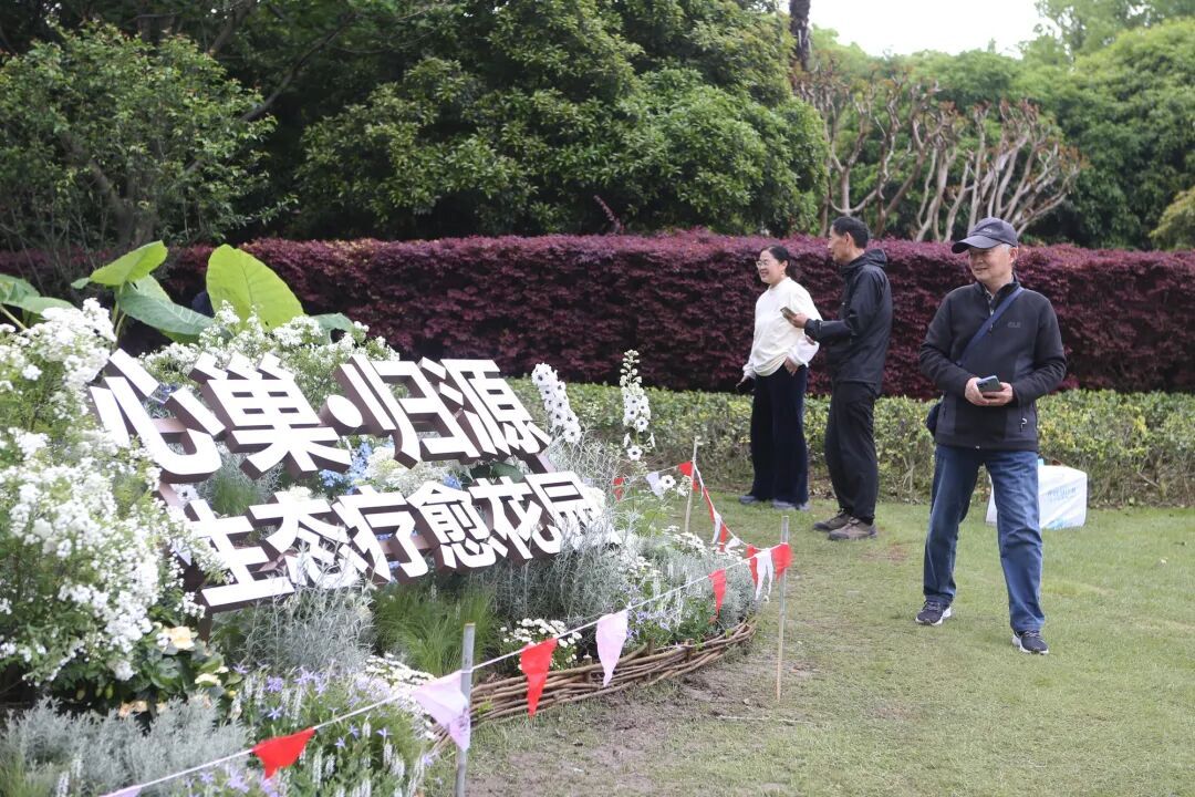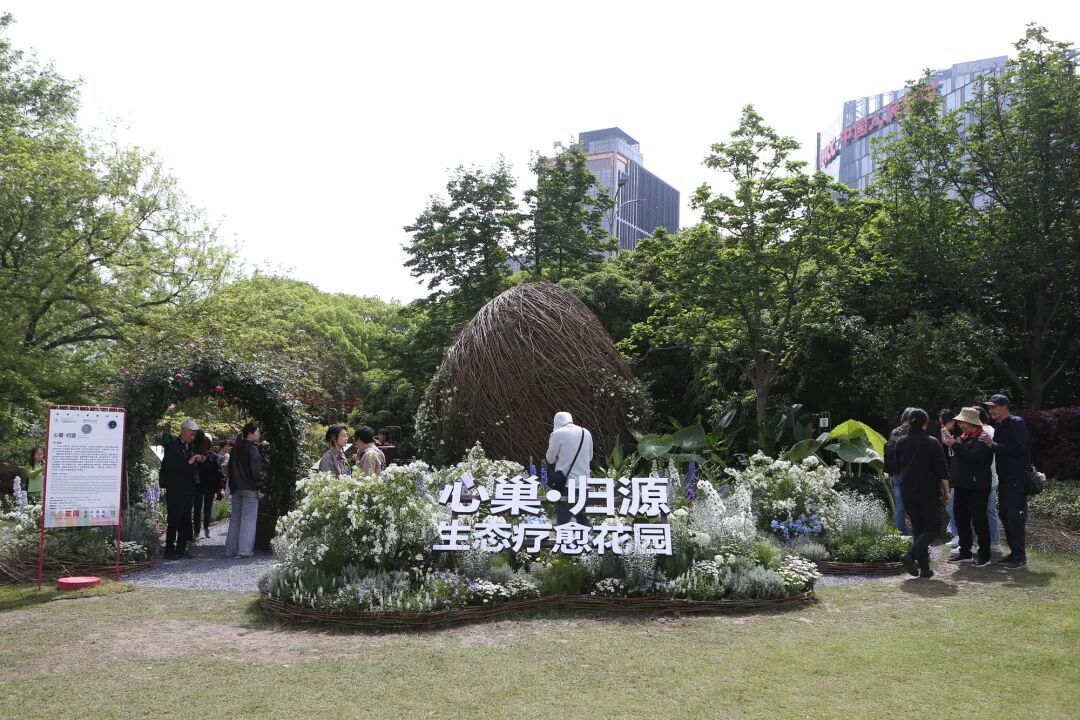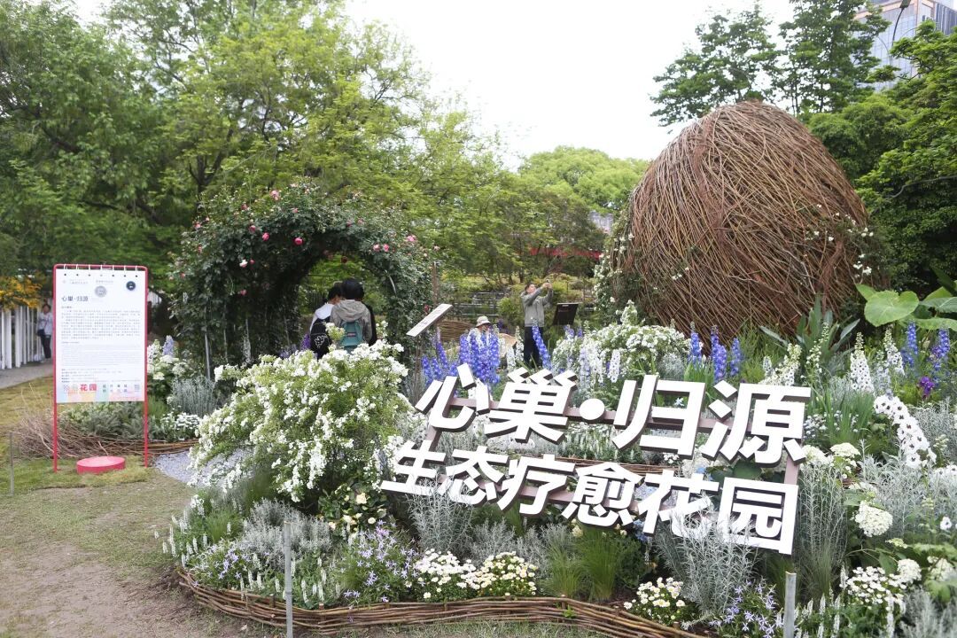 而在这片热闹与繁华中,一座外形为鸟巢的花园——“心巢·归源生态疗愈花园”在所有花卉装置中显得特别瞩目,吸引了众多目光。据悉,该花园作为本届花卉节的核心特色展园,由华东师范大学心理与认知科学学院严文华教授团队倾力打造,以鸟巢为中心,象征“安全庇护、生命本源”,呼应了“回归内在平衡”的疗愈主题,是国内首个以心理学依恋理论为核心的沉浸式生态疗愈空间。