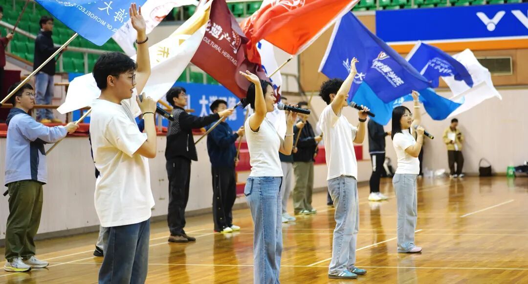 伴随各学院代表与研究生十佳歌手代表共同唱响歌曲《第一天》,29支参赛队伍挥舞院旗,依次亮相。参赛代表们以饱满朝气与昂扬斗志,展现出青春蓬勃奔涌的磅礴气势。