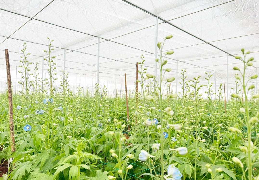 基地流转土地近360亩,其中高标准种植大棚50余亩、普通种植大棚300余亩,建成轻钢结构现代化种植大棚28500平方米,配套智能温控、通风遮阳、水肥一体化等现代化设施,为花卉生长提供稳定、优质的环境,彻底告别“靠天吃饭”的传统种植模式。