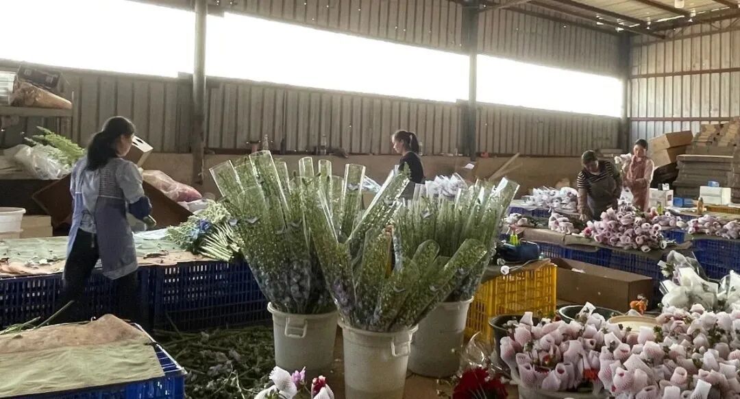 同时,基地配套建设1360平方米标准化包装车间和200平方米冷藏室,配齐先进的冷链储运设备,构建起从花卉采摘、分拣、包装到冷藏、储运的全流程保鲜体系,有效解决花卉保鲜难、运输远的问题,大幅提升花卉产品品质和市场竞争力。