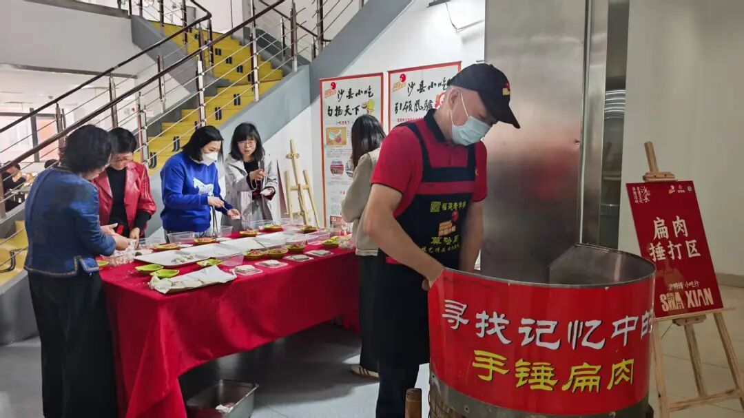 与以往单纯的美食推介不同,本次活动不仅是一场非遗文化体验,更是一次消费场景的精准落地。现场设置的非遗互动体验区,让大家可以在非遗传承人的指导下亲手捶打扁肉、包制蒸饺。