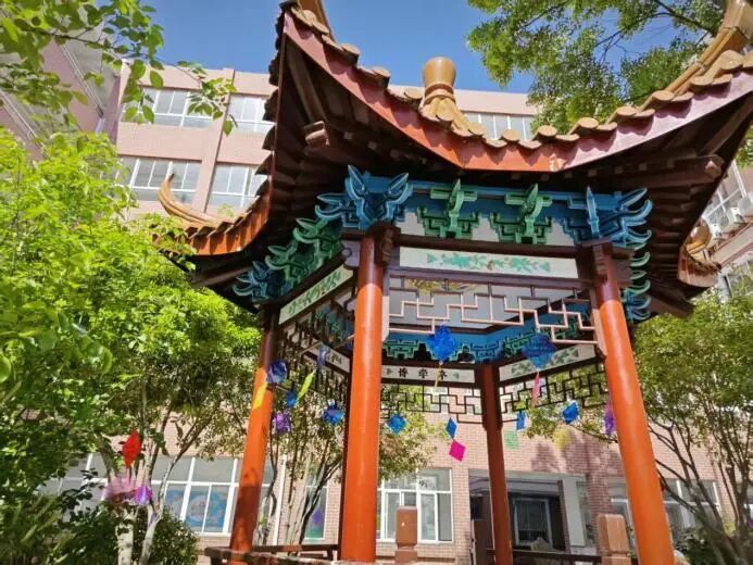 新大桥中学连续四年在博学亭下举办“三行诗会”,校园小亭见证诗意年年绽放