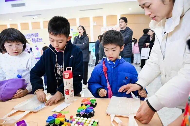 活动上“悦”起来。复旦实验中学教育集团成员校接力,连续五年举办“春耕诗会”,学生走进田间地头,在油菜花田里与村民一同诵读春耕诗词,阅读与劳动教育、乡村振兴交织成生动的课堂。“班班有书声”十周年展演设置腰封设计、国潮手工等体验区,让阅读从“诵读”走向“读思创”融合。