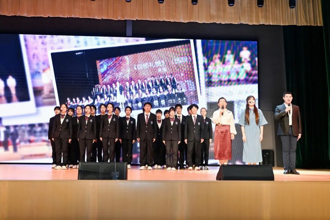 2025年,“班班有书声”十周年展演上,师生同台朗诵历届优秀节目