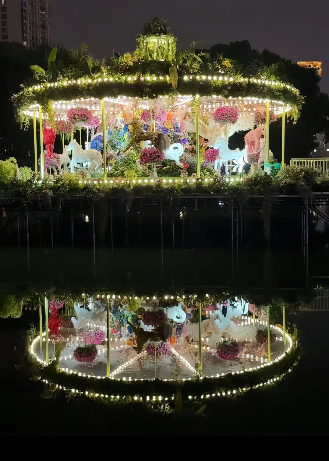 “马上走花路”里,那些曾陪伴石库门炊烟、载满弄堂欢歌的城市初代木马,化作温柔花艺装置,正圆满旋转。