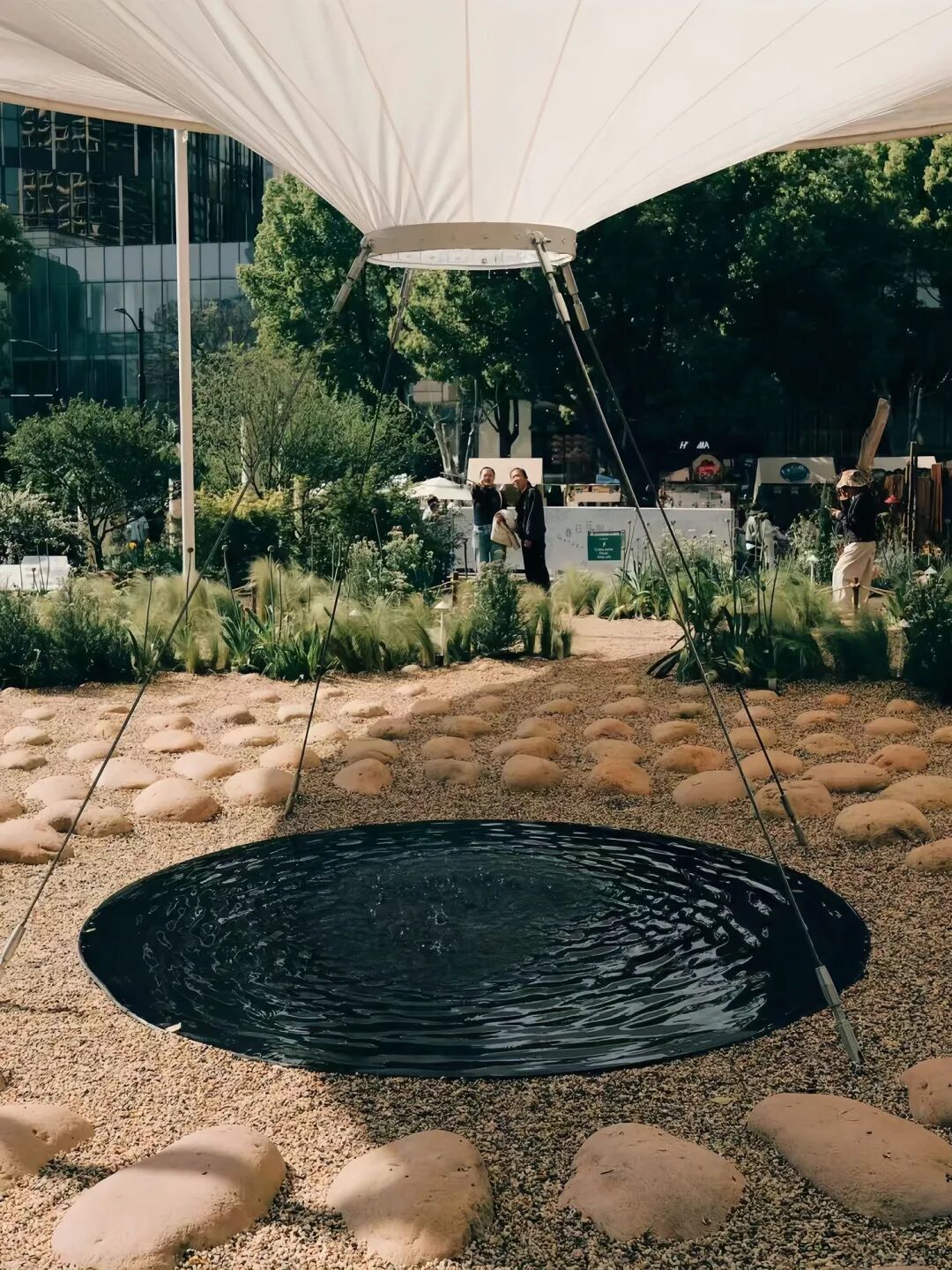 “水滴花园”里,一方澄澈静水在圆池中静静铺展,层层涟漪缓缓漾开,细碎波光温柔又治愈。