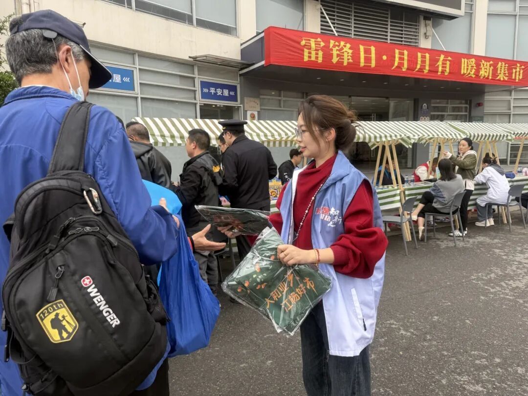 宝山区杨行镇第三综合网格江杨市场内,一场主题为“雷锋日·月月有 暖新集市”的便民活动火热开张,短短两小时吸引市场商户、货运司机、周边居民等数百人参与。