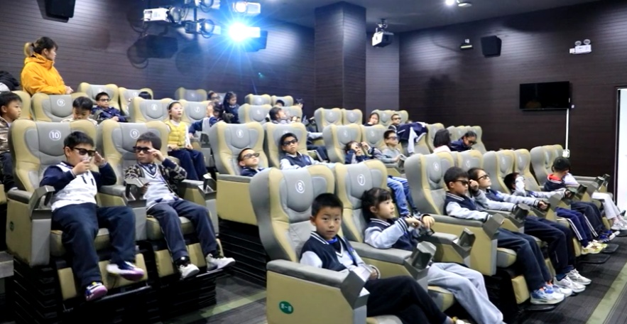 从展厅走向影院,学生们进一步“走近自然”。在4D科普影片《蜜蜂的世界》中,蜜蜂采蜜、授粉、生存等过程被串联呈现,生态链关系在故事中逐步展开。沉浸式体验中,学生们逐渐了解不同物种之间彼此依存、缺一不可。