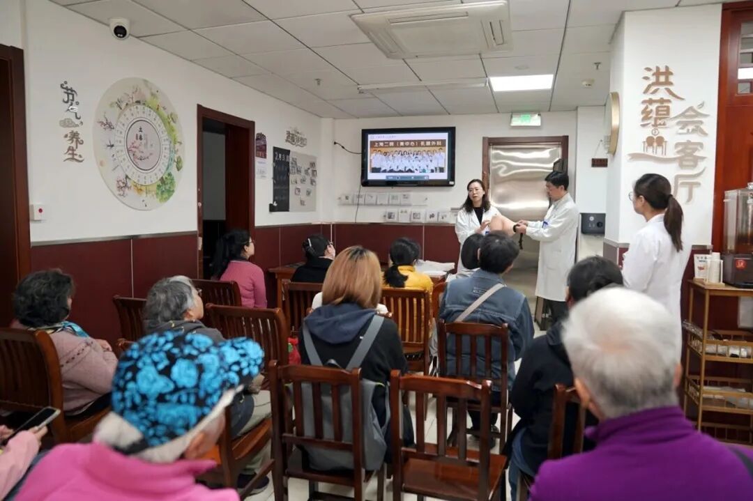 洪蕴会客厅同步开展沉浸式科普活动,打破传统宣讲模式。上海市第二人民医院乳腺外科唐益清医生现场演示乳房自我检查正确手法,讲解关键要点并指导居民实操;潘贇昊医生以乳腺肿瘤早诊早治为主题,结合案例和数据强调早筛重要性,解读“全周期管理”理念,普及预防、筛查、康复全流程知识。