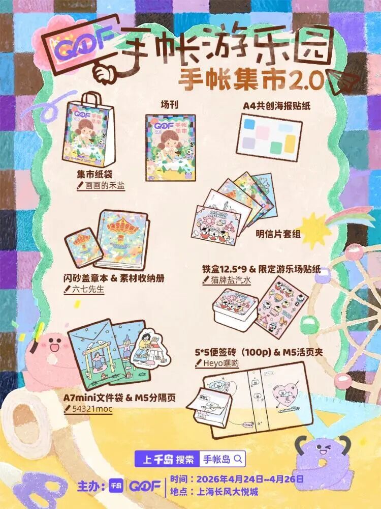 4月24日至4月26日,深受手账爱好者喜爱的QDF手账集市将亮相普陀区长风大悦城。这里汇集了上百家原创手账店铺,共同营造出一座梦幻的“纸上游乐场”。