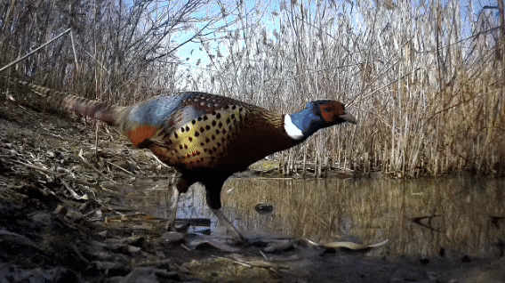 雉鸡:雄鸟身披“五彩霞衣”,尾羽修长华丽。雌鸟则为低调的“迷彩服”,善于隐匿。它们不善远飞,却能在灌丛草地间快速奔跑,以植物种子和昆虫为食,是常见的“三有”保护动物。