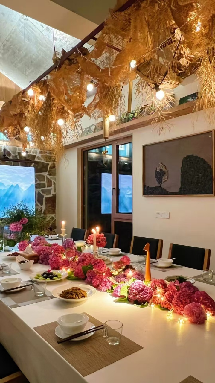 THREE V I L L A G E B L O O M 【沁花·食|舌尖花宴】 沁花入食,香润心安。 粉色的绣球花“花神”温暖馨香,悄悄融进乡野烟火里。