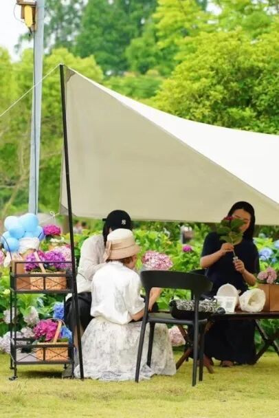乡遇花海乐府 4月30日傍晚,开幕式星光音乐会上,百姓歌手罗小罗x散漫歌舞厅将联袂登场,音乐轻漫花海,为花事启序章;5月30日,国际知名蒙古族乐队将携草原长风而来,马头琴音穿花而过,苍劲旋律与江南柔婉撞个满怀。 绣球花节期间的乡遇花海乐府里,沪剧、吴侬评弹、非遗田山歌、皮影戏轮番精彩登场,婉转古韵绕花海流转。