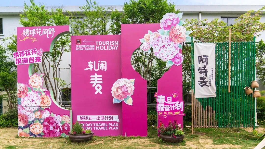 沪上首创花海露营 5月底,上海首家Nordisk大白熊东厍营地一期将首发推出花海露营,让沪派江南乡村与户外野趣露营碰撞出独特火花。房车依花而停,卧听风声花语,醒闻鸟鸣花香。花海下午茶、户外烧烤、夜间观星,把诗意生活安放在繁花之畔。 草原游牧区 5月底还将同期推出草原游牧区,落日烧烤派对、露天电影、马头琴轻吟,将沪派江南的温婉与草原游牧风情自由相融。 乡野花栖季 「满山乡遇·壹号花院」民宿小院里,绣球花环绕屋檐,沐浴在花香里,醒在晨光中,尽是乡野栖居的安然。 FIVE V I L L A G E B L O O M 【繁花·集|乡野烟火】 繁花成集,烟火和乐。缤纷绣球花带来的岁月暖意,汇成市集里的鲜活欢悦。 乡村神仙摊主「茴香大集」 「茴香大集」依花而设,火出圈的绣球花冰淇淋、花间美食、乡土农产、非遗文创齐聚,绣球花科普花境藏着花事秘语,烟火气与美学轻轻相融,慢逛间尽是小美好。 沪派江南x草原游牧「太阳牧集」 草原游牧区里,「太阳牧集」融江南温婉与草原热烈,文创手作、游牧风物、花间小食荟萃,一市集纳两种风情,逛着逛着,就遇见不期而遇的欢喜。 春末的风拂过田野, 东厍村的阿特麦文创园也在悄然酝酿着这场盛大花事。 巨形蝴蝶、限定美食、手作工坊、亲子野趣、田园美宿…… “扎闹麦”绣球花节的精彩, 已经迫不及待要和你见面。 本届「乡遇东厍·绣球花节」期间,阿特麦精心推出了寻味绣球·美食篇、亲子玩乐·活动篇、田园美居·住宿篇和文创手作·伴手礼四大“花漾篇”,承包大家的“吃喝玩乐住”。