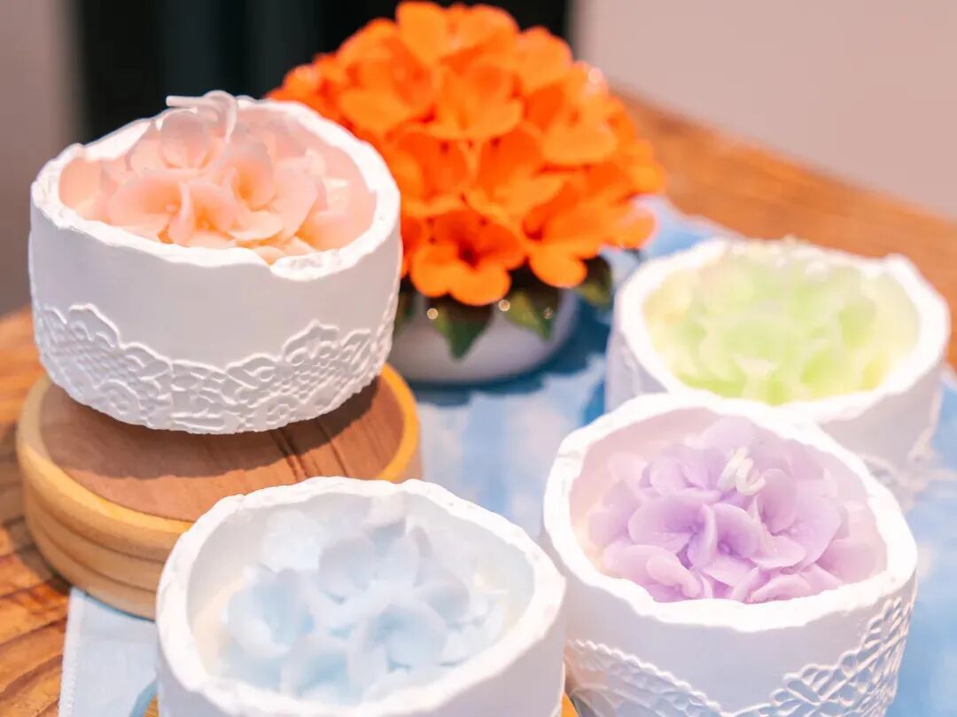 落尘咖啡·绣球花节限定新品 一抹绣球椰椰+一抹绣球青青 麦点工坊·绣球花酥 东篱小院·绣球花冰淇淋 东篱小院·一席花味珍馐 问兮大酒店·春日绣球双人餐 开锅大吉·绣球花主题火锅