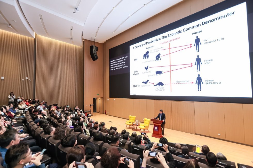 通过回顾艾滋病、西班牙流感和SARS这三次人类历史上重大传染病危机,张文宏强调许多灾难的共同机制,都是自然界中的病原体不断试图突破物种屏障,进入人类社会。这些灾难的根源往往与人类活动、环境改变和全球化进程密切相关。自然界与人类之间存在一道看不见的屏障,而病原体“叩门”从未停止。“就像这个礼堂,我们不知道下一个进来的是谁,这个人有可能会影响到全世界。”张文宏借此提醒听众,真正值得警惕的并不是某一次单独事件,而是这些看似分散的信号正在不断累积,提示人类与自然之间原有的边界正在变得更加脆弱。