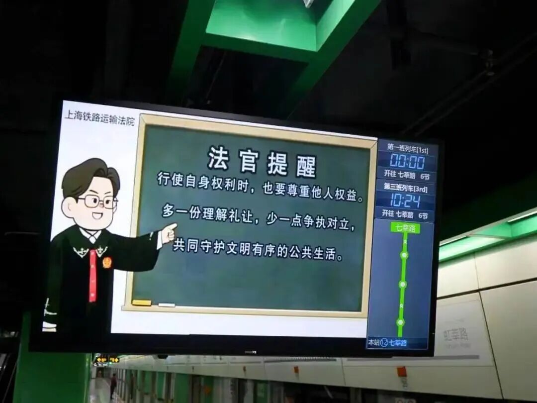 2025年8月,上海铁路运输法院首次尝试在地铁站厅大屏循环播放典型案例,通过动态影像将法律知识嵌入乘客日常出行场景,助力营造安全文明出行环境。
