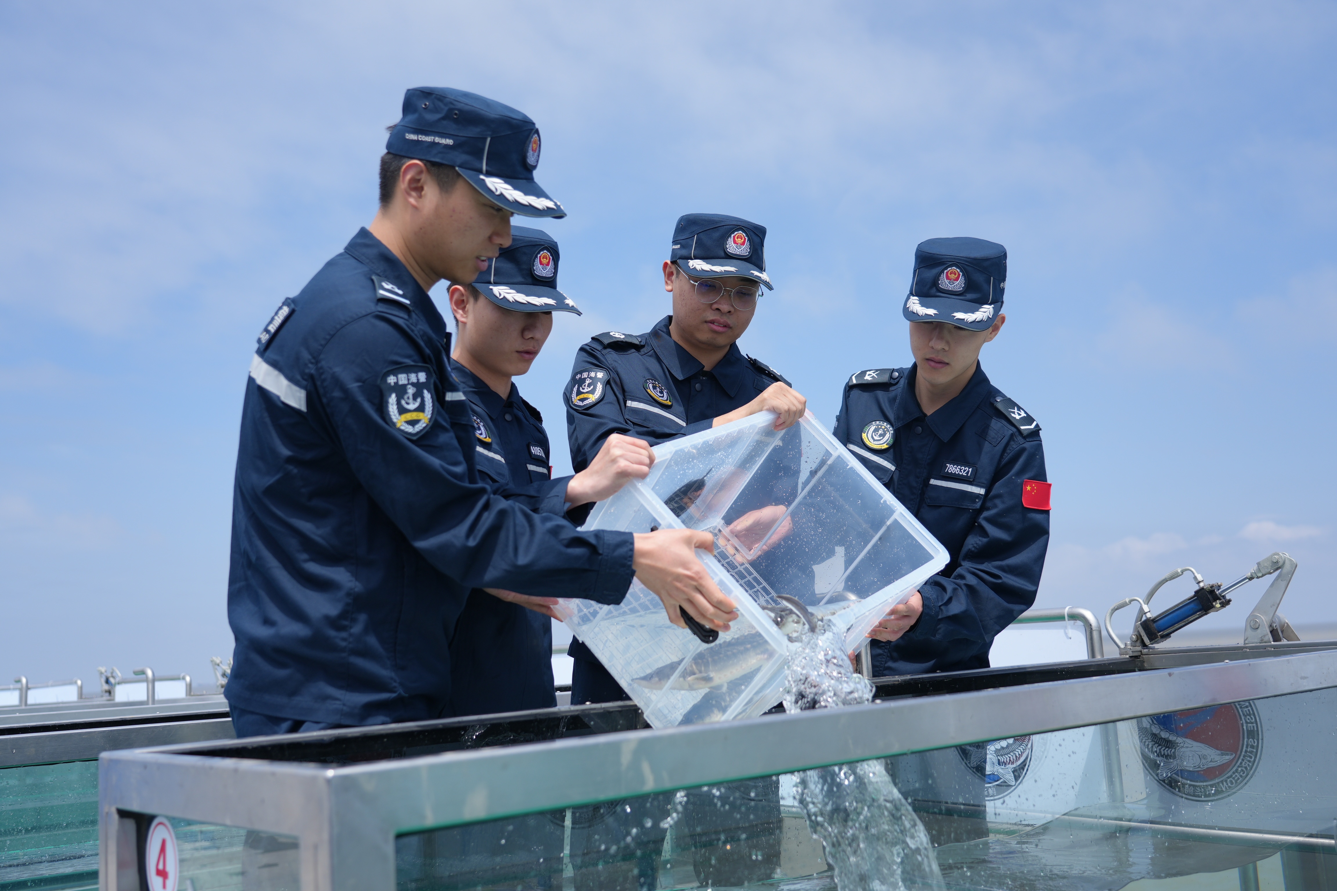 活动期间,崇明海警局组织执法员走进上海市水生野生动植物保护研究中心——被誉为中华鲟“生命驿站”的科研基地。在水野中心工作人员引导下,大家参观了人工繁育车间和养殖基地,深入了解中华鲟从幼苗培育到成体养护的全过程。随后在横沙岛举行的中华鲟幼苗放流活动中,执法员小心翼翼地将一尾尾幼苗放入放流槽,看着幼苗消失于碧波之中,执法员感慨万分地说道:“以前我们是执法者,今天亲手送它们回家,更懂得了每一次执法都关乎它们的生死。”从执法者到参与者,大家表示将以更严格的执法、更精准的守护,持续保护好长江珍稀濒危物种。