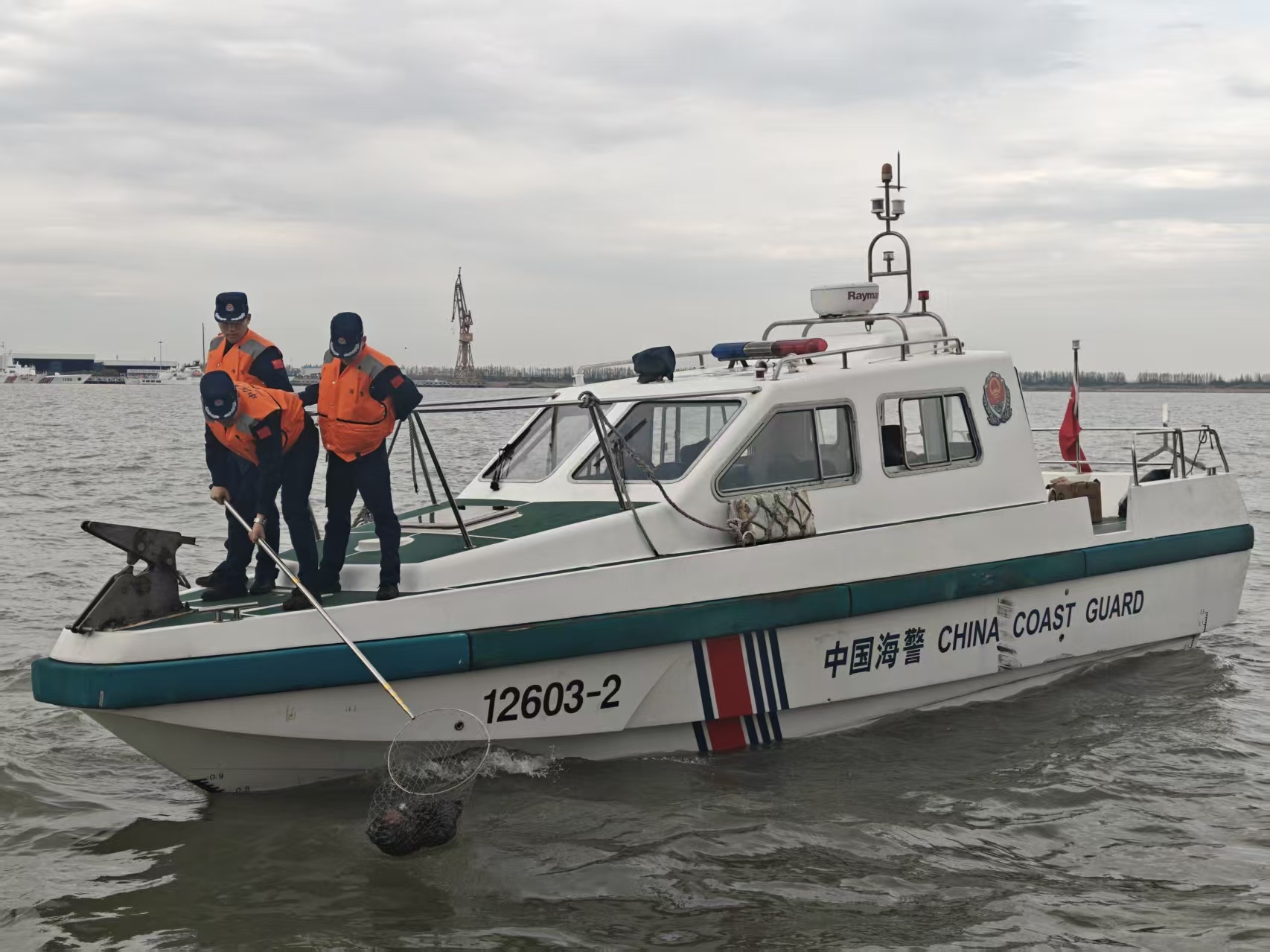 中华鲟素有“水中大熊猫”之称,其洄游通道的清洁与否直接关系到种群存续。崇明海警局组织舰艇与工作站执法员兵分多路,对辖区海面及岸线开展拉网式垃圾清理。舰艇在巡逻过程中同步打捞海面漂浮垃圾,执法员手持工具对滩涂上的塑料废弃物、泡沫浮球等进行地毯式清理。一袋袋垃圾被集中转运,一片片海滩恢复洁净。海洋垃圾的减少,意味着中华鲟误食塑料或被垃圾缠绕的风险大大降低。大家用脚步丈量海岸线,用汗水擦亮生态底色,为中华鲟等珍稀水生野生动物营造安全家园,守护碧海蓝天。